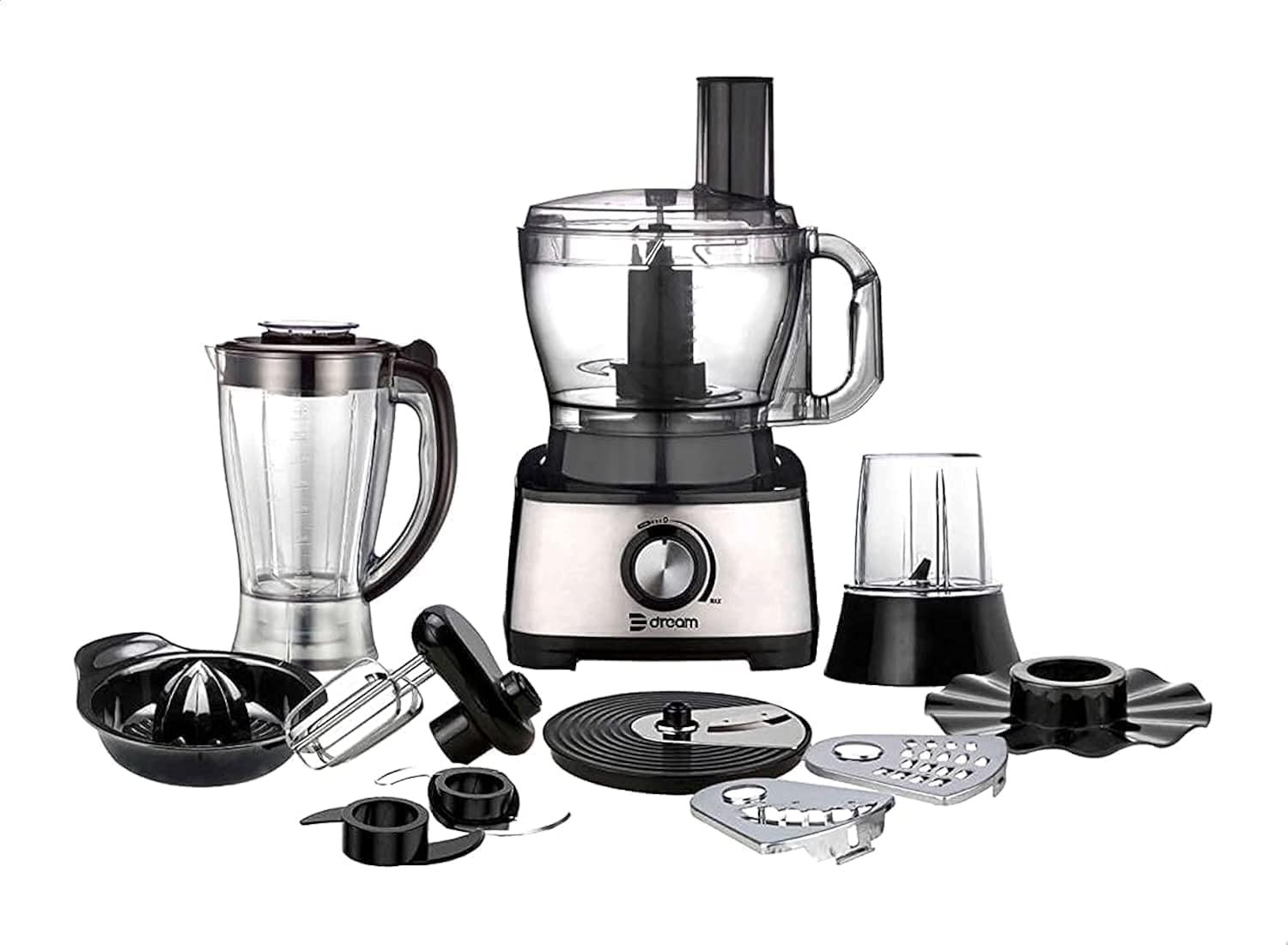 الجهد الكهربائي: 220-240 فولت، 50/60 هرتز القدرة: 1000 واط المميزات: جسم خارجي متين: مصنوع من بلاستيك ABS عالي الجودة. وعاء بسعة 1.2 لتر مع دافع لسهولة الاستخدام. غطاء الوعاء مزود بقفل مزدوج لزيادة الأمان. سرعتان مع خاصية النبضة (Pulse) للتحكم الأفضل. مقبض مزخرف بالفولاذ المقاوم للصدأ للتحكم في السرعة بسهولة. إمكانية تخزين الملحقات الصغيرة داخل الوعاء لتوفير المساحة. يدعم 6 وظائف أساسية: التقطيع، العجن، العصر، التقطيع بالمبشرة، التقطيع إلى شرائح، تقطيع الجوليان.